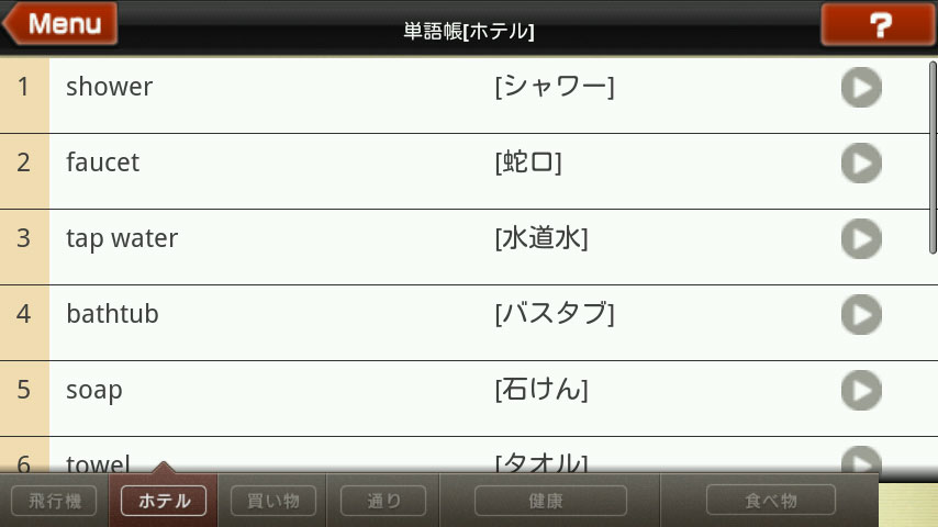 海外旅行での英会話を楽しもう。旅行中に誰もが出会う場面の会話に備えます。旅行先でも役立つ英単語、音声付き♪スピートの変化で脳を活性化、英語を聞き取る耳をつくる、リスニング強化アプリ!